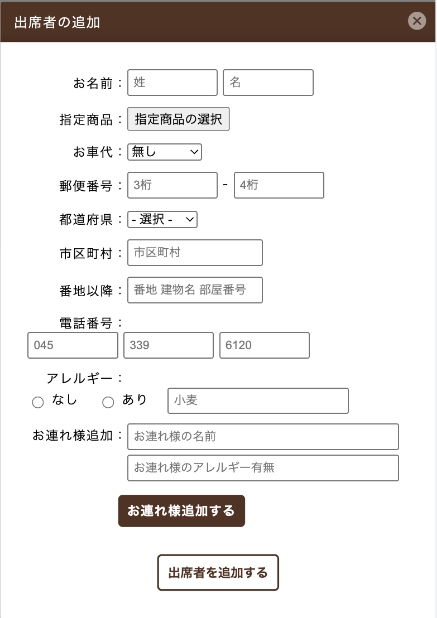 該当の参列者様に再度回答いただくか、参列者様情報を【+参列者の追加】より追加してください。