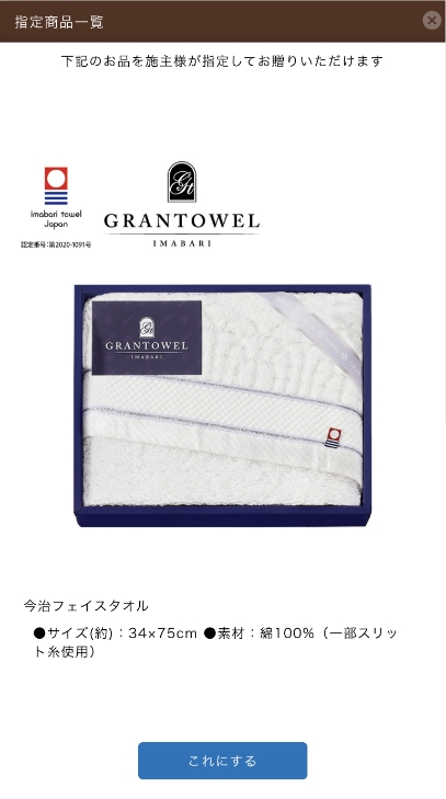 自動的に施主様が送られた金額コースのタオルギフトが当日にセットされます。